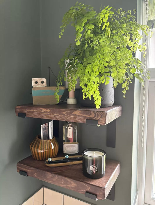 Rustic Wooden Scaffold Board Shelving with 2 Brackets